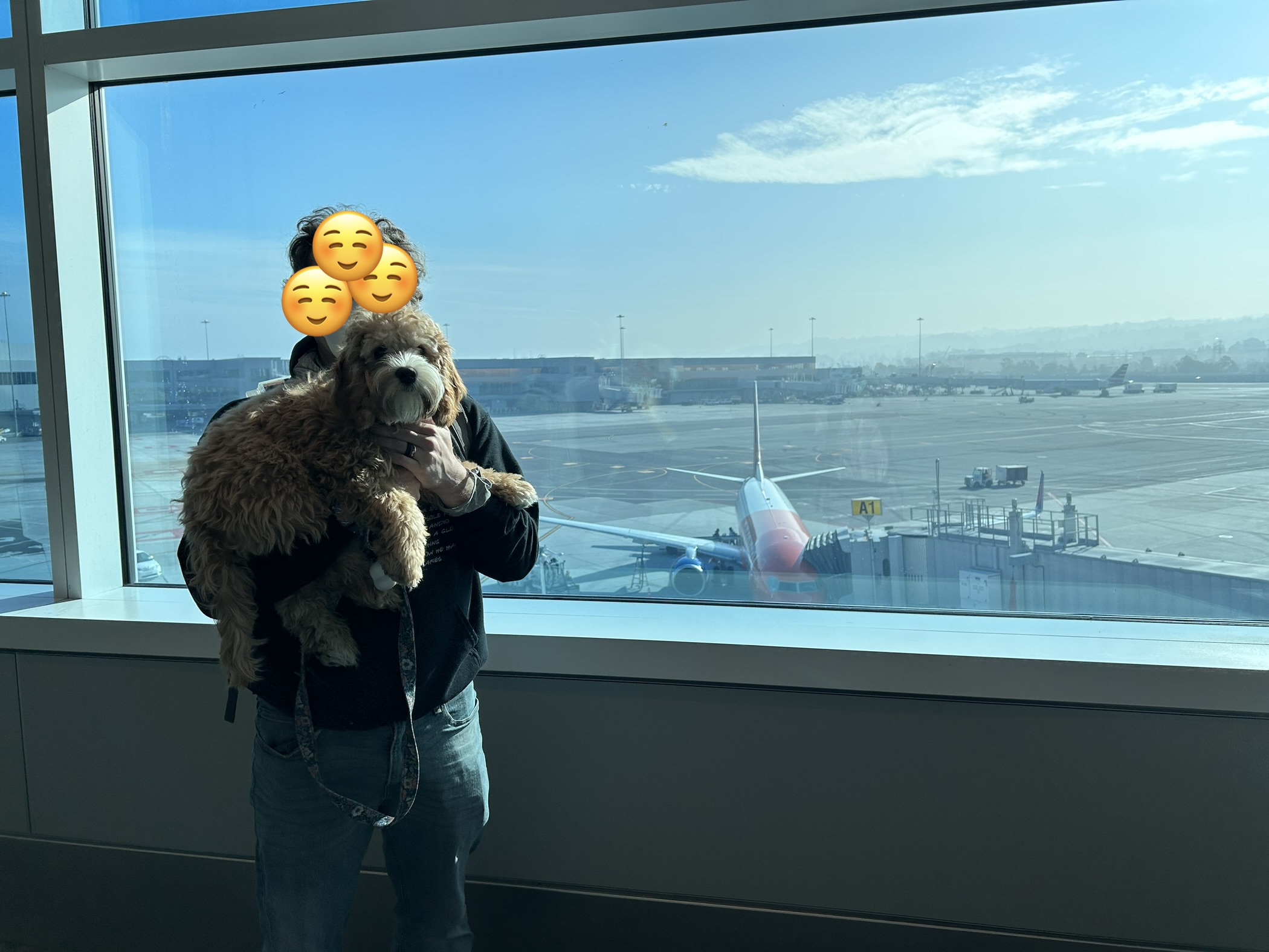 - After the flight, we went to the pet relief area at the arrival airport just in case.